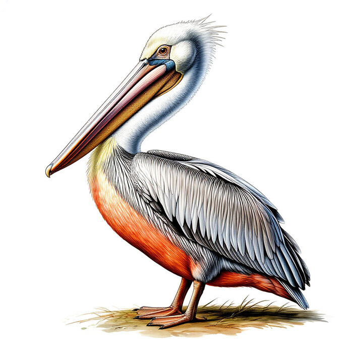 Пеликан на белом фоне скачать или распечатать