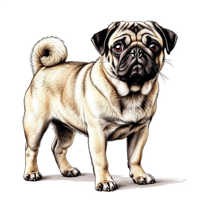 Мопс на белом фоне скачать или распечатать