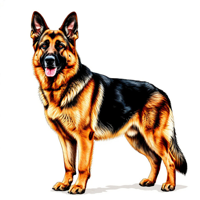 Немецкая овчарка на белом фоне скачать или распечатать