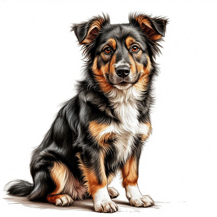 Дворняжка на белом фоне