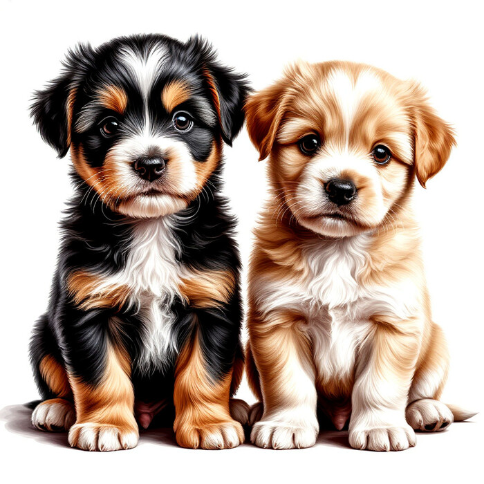 Два милых щеночка на белом фоне скачать или распечатать