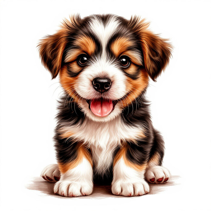 Весёлый милый щеночек на белом фоне скачать или распечатать