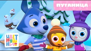 В гостях у Зайчонка Скок друзья перепутали все свои вещи. Чтобы узнать где чья шапка, шарф, рукацицы и сапожки, наши герои решили поиграть в игру и с помощью аппликации одеть своих персонажей. Весёлая песенка Цветняшек поможет малышам понять что такое зимняя одежда, какая она бывает и почему важно тепло одеваться в холодное время года.