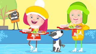 Смарта и Амалия катались на коньках, вдруг Амалия услышала страшный звук, но оказалось, что это у Спотти урчит живот - пора обедать! Смарта, Амалия и Спотти отправились в кафе. Смотри наш развивающий мультик и помогай Смарте разгадывать задания, добраться в кафе и посчитать сколько монеток нужно, что бы заплатить продавцу за обед.