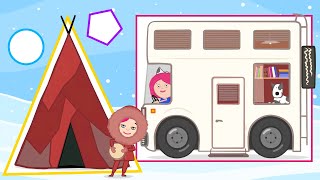 Смарта и Спотти изучают геометрические фигуры, смотри - они похожи на домики! Квадрат и треугольник - это обычный домик, а вот треугольными бывают вигвам или чум! А ты знаешь какие еще домики бывают? Энциклопедия Вики расскажет про домики, а Спотти и Смарта узнают новые фигуры.
