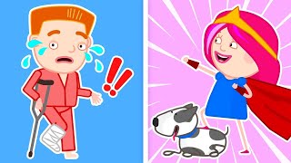 Смарта отправляется гулять с собакой и встречает друга, который играет один в футбол. Где же Боб? Оказывается, он вывихнул ногу. Смарта предлагает другу сходить в магазин за фруктами и навестить Боба. Вот он обрадуется. Но также под конец дня она сильно устает и думает, как здорово было бы иметь суперсилы. Правда ли, что супергероями являются только те, кто имеют какие-то волшебные способности? Включай мультфильм Смарта и чудо сумка и ты узнаешь ответ на этот вопрос!