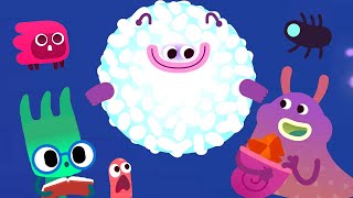 Друзья отправились в путешествие - в центр Съедобной планеты, чтобы изучить ядрышко, благодаря которому планета существует. Поехали! Ух ты, Ум и Хрум пробурили первый бисквитный слой планеты. Ого, Арахисовая порода! А это ещё что? Это Карамельная корка. М-м-м, звучит вкусненько! Вот оно - ядро Съедобной планеты. А из чего оно состоит? Это огромный орешек в молочной начинке, в вафельной корке и всё это сверху посыпано воздушным рисом. Это должно быть очень, очень вкусно. О, нет, Хрум съел ядро планеты! Без ядра вся планета развалится на части! Нужно срочно подменить ядро. Хрум это сделает, он станет ядром планеты! А Ум отправился на поиски нового ядра. Но сможет ли он его найти?