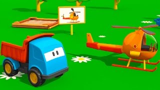 Грузовичок Лева привозит новые детали и начинает сборку Вертолета. Одной детали - второго винта от вертолета - не хватает, и Лева едет его искать на детскую площадку.