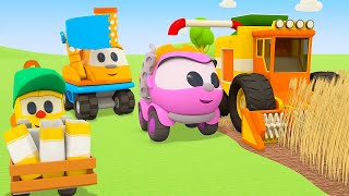 Смотри, пшеница созрела - нужно ее собрать! Понадобится уборочная машина. А Лея ей поможет - зерна будут сыпаться в ее кузов. Готово! А зачем нужна пшеница? Чтобы делать муку, а из муки экскаватор Капу готовит разные вкусности! Но чем же перемолоть пшеницу в муку? Грузовичок Лева соберет для этого ветряную мельницу! А потом Капу угостит друзей своим печеньем.