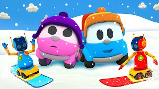Грузовичок Лёва, друзья-машинки и роботы захотели покататься зимой по заснеженным горам и отправились в путешествие. Но розовая машинка Лея с ними не поехала: она боится снежного человека, который там живет. Чтобы быстро и легко подняться в горы, Грузовичок Лева собрал канатную дорогу с кабинками, а друзья ему в этом помогли. Но у одной из кабинок не хватает дверей, Лёва обронил их возле домика Леи. Наберется ли Лея храбрости, чтобы отвезти друзьям потерянные детали?