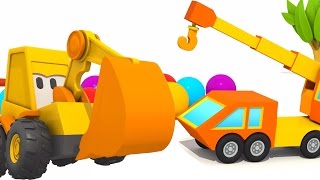 В этой серии Экскаватор Мася будет искать яйцо. Давай спрячем его хорошо! В песочнице он быстро найдет, за деревом мы уже прятали, а давай спрячем яйцо в шариках! Там будет довольно сложно найти! Какой Мася молодец! А теперь давай посмотрим что внутри. Какие интересные детальки. Поможешь Масе собрать конструктор? У нас получился подъёмный кран!