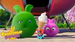 Солнечные Зайчики снова в парке. Зайчики катаются на роликах, когда странный аттракцион в виде летающей тарелки перемешивает им все планы и… цвета.
