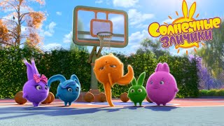 Солнечные Зайчики оказываются на баскетбольной площадке и как настоящие баскетболисты пытаются забросить мячики в кольцо.