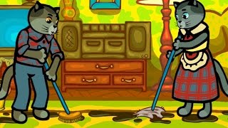 Сегодня у котят день рождения, и они так спешили домой, чтобы его отпраздновать, что забыли разуться и испачкали весь пол. И теперь, прежде чем сесть за стол, им нужно убраться во всем доме!